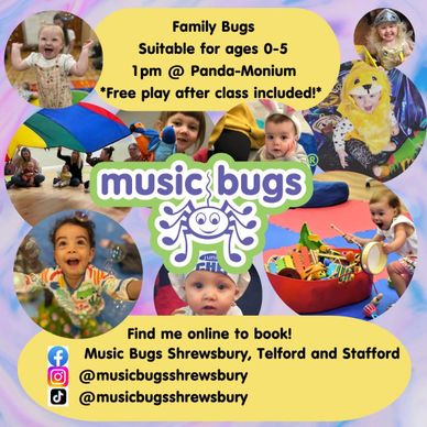 On 𝗪𝗲𝗱𝗻𝗲𝘀𝗱𝗮𝘆 we’re getting musical with Music Bugs Shrewsbury, Telford and Stafford for sensory and play based music and singing classes which are always fun filled for 0-5 year olds and their grown ups!
